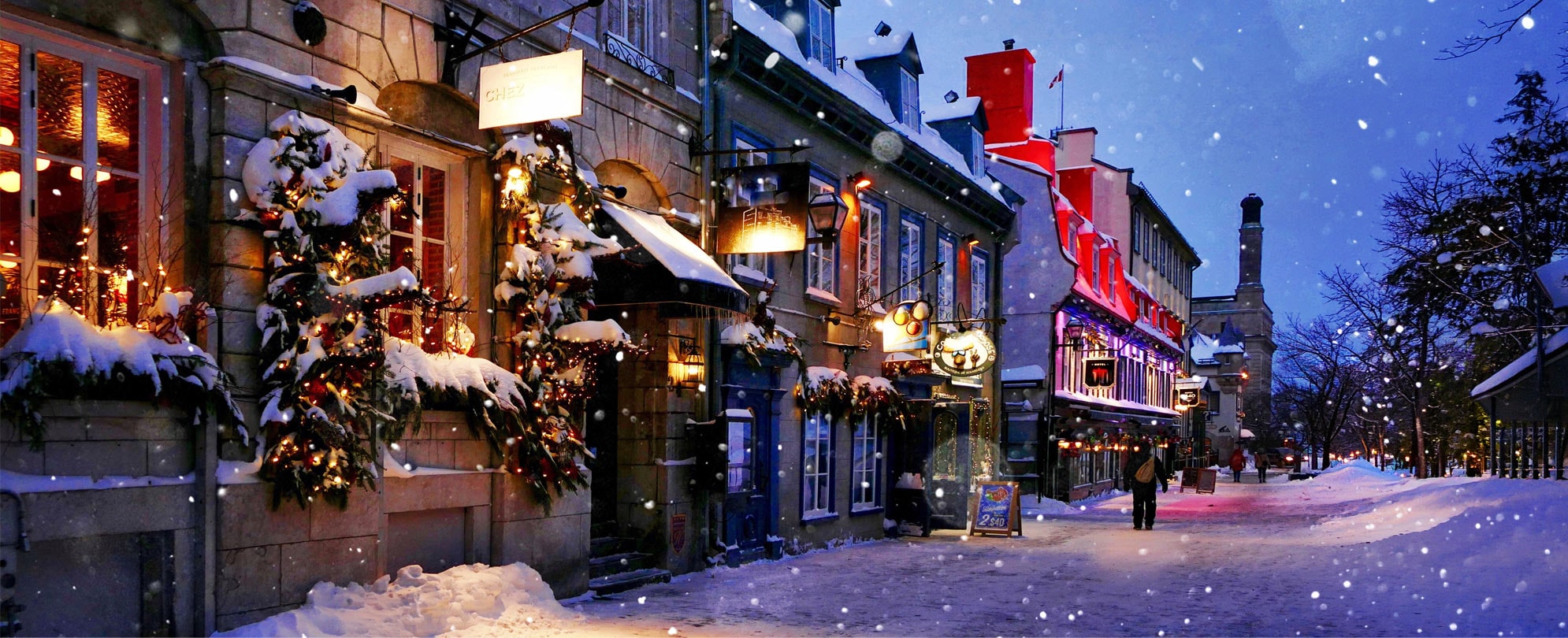 Warm winter wishes abound in the holiday atmosphere and abundant Christmas markets of Montréal and Québec City. Discover a winter wonderland of French cultural delights, sights, and bites to warm the heart and inspire the imagination. From Montréal’s Basilique Notre-Dame to Jean-Talon Market, Grand Marché de Noël de Montréal (Great Christmas Market), and Montréal Christmas Village, you’ll feel a cheerful glow around each corner. In Québec, explore Canada’s only walled city. Stroll the narrow streets amid old-world houses by the St. Lawrence River and indulge in a sugar shack lunch in the old tradition. Dive into the natural beauty of Montmorency Falls Park and feel the holiday spirit in markets brimming with holiday cheer and European-style outdoor market shopping as winter warms the heart on this wintertime vacation in Montréal and Québec!