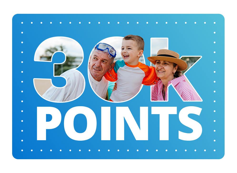 It’s been a while since you’ve traveled, so here are 30,000 reasons to start packing. Book by 3/31/26 with offer code 30KIN2026 online or in the app, travel by 5/15/26, and get 30,000 points to use on a future getaway. Ready to start your next vacation chapter? See Offer Details.